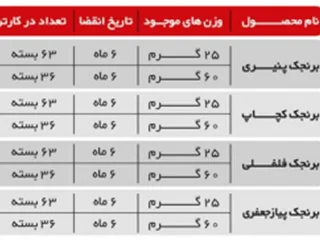 برنجک های بسته بندی کوچک داچی، در کارتن های 63 عددی با وزن 25 گرمی عرضه میشوند